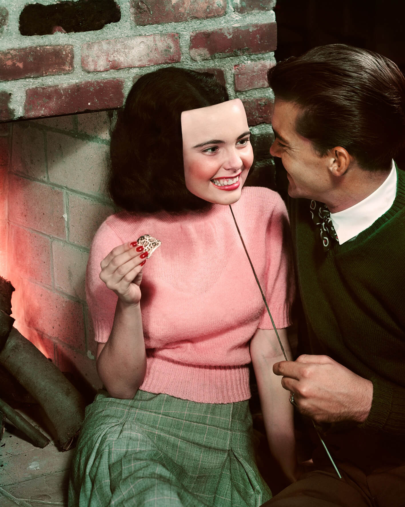 The project is based on vintage photographs purchased from an image bank. Most photos come from American archives from the 1950s and 1960s. Family scenes, holiday souvenirs, everyday life – all of that suspended anywhere between truth and fiction. It is hard to figure out whether the images were taken spontaneously or were entirely staged. We know nothing of the actual relationships between people in the photographs; we can only guess how much truth is in their gestures and gazes. Who are, or were, these individuals? Are they actors playing happy families, or real people whose photos were put up for sale by the image bank? Some are present in the pictures, while others are vanishing, but they always leave a trace. The images, modified in various ways, are wrapped in a new context: our recollections of these people and situations are transformed and blur gradually.
